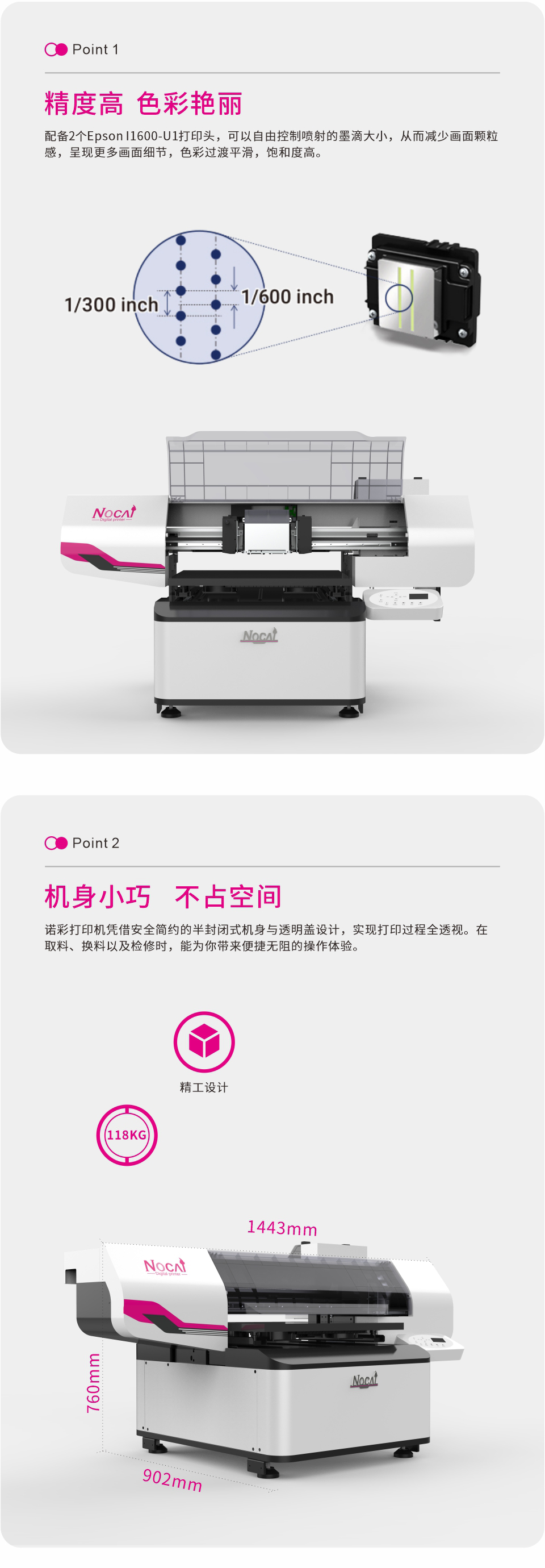 精度最高可達1200dpi,白彩+光油,打印畫質細膩。